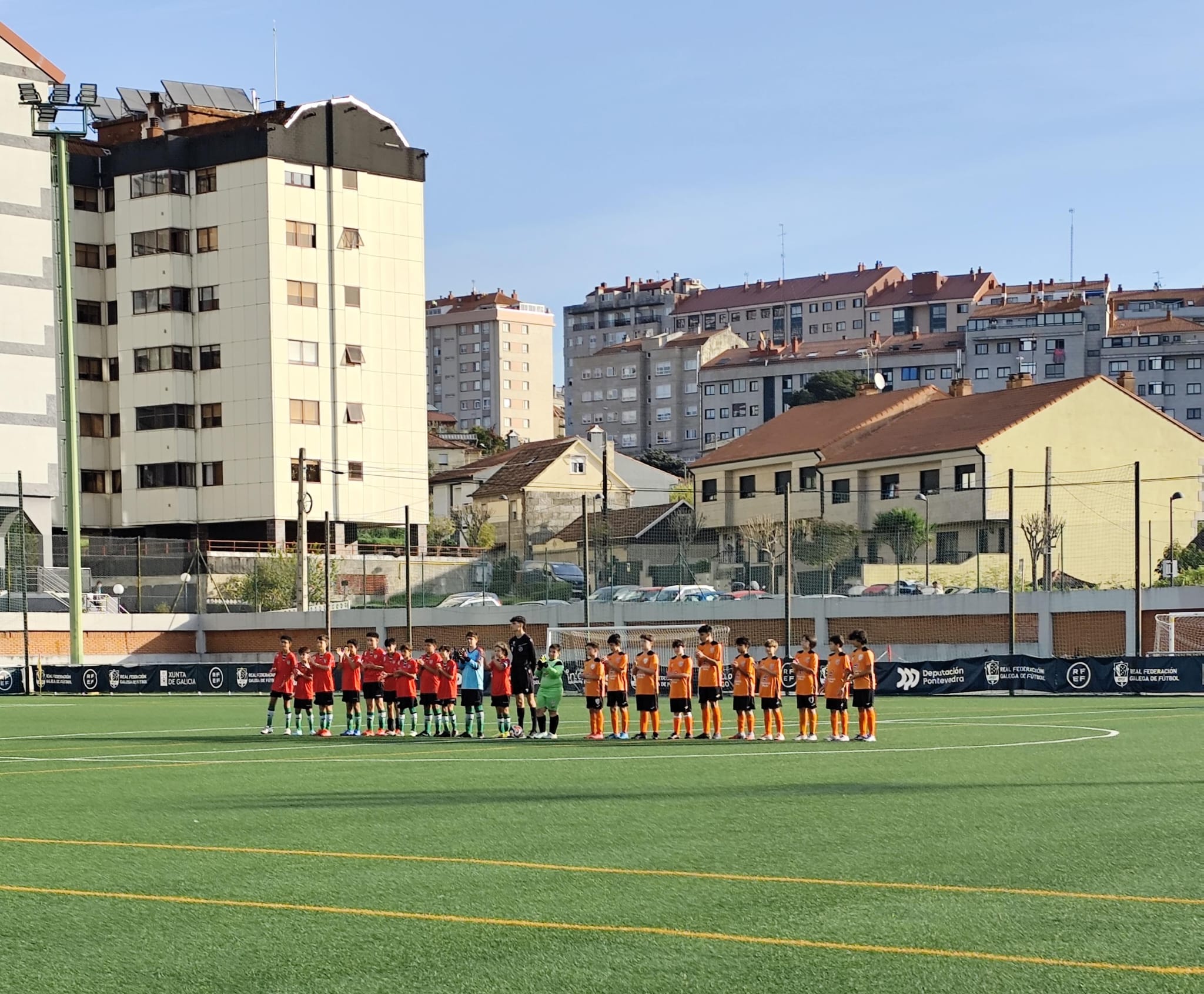 A choiva e o estado do campo non foron os nosos aliados. Para varios dos nosos mozos, era a primeira vez que xogaban en condicións tan adversas, o que unido á gran solidez do equipo contrario –que movía o balón cunha precisión e velocidade que nos descolocaba–, fixo que o partido se nos fixese costa arriba desde o inicio. Nótanse os poucos meses de rodaxe que leva o noso equipo, pero isto é parte esencial da aprendizaxe. Para gañar hai que saber perder e cando o rival é mellor, felicítaselles.