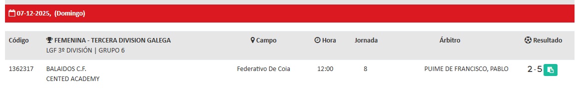 Esta información foi tomada directamente da páxina da REAL FEDERACIÓN GALLEGA DE FUTBOL. Pode estar suxeita a cambios. Para confirmar a última hora, consulta o enlace directamente.